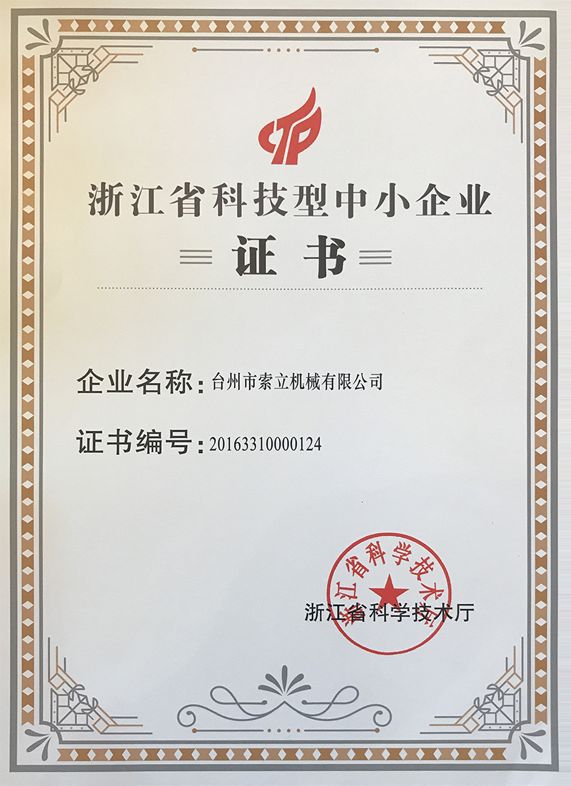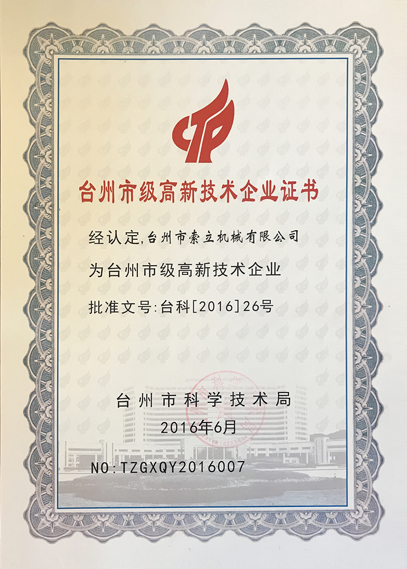 先后被浙江省科學技術廳授予“浙江科技型中小企業(yè)”、臺州市科技局授予“臺州市級高新技術企業(yè)”